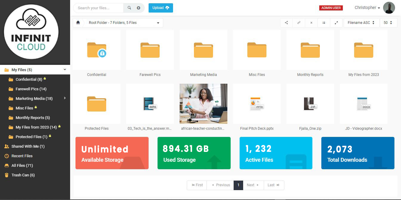 Infinit Cloud is our advanced platform that allows your organization to keep and easily share files online. It is replete with features designed to make it extremely robust, secure, and very fast so that your cloud storage experience feels like a breeze. Built using ajax and Bootstrap, Infinit Cloud is fast, simple, clean, and beautiful.